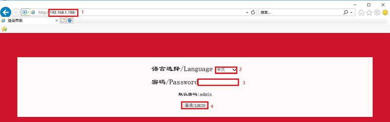 | WEB浏览器: | 默认IP:192.168.1.188 | |