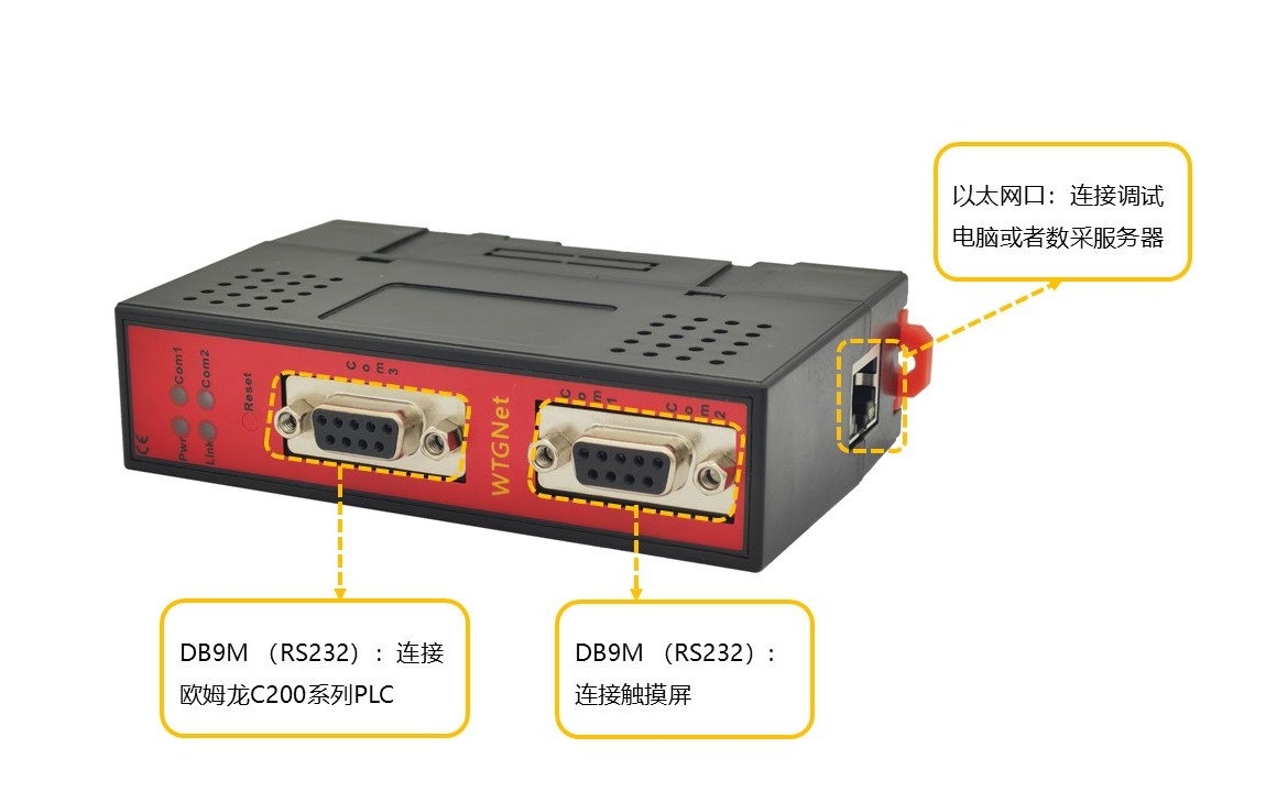 产品介绍:欧姆龙CX协议转换网关,WTGNet-CX,主要应用于欧姆龙C200系列PLC数据采集,DSUB9M(RS232)通讯口直接插入,支持C-Mode通信协议通讯;采用三通设计,即插即用(自动获取电源,无需额外供电,部分设备需额外供电)。无需修改PLC任何参数,编程软件或采集软件通过网关的以太网对进行数据监控和数据采集,触摸屏可以通过扩展的RDSUB9M(RS232)口与PLC进行通讯。