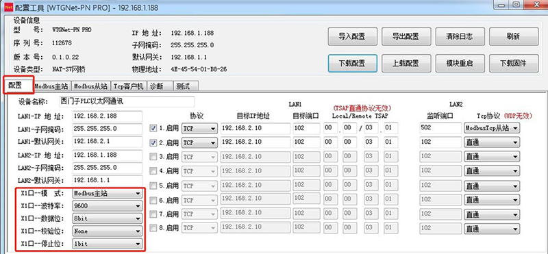 【下载配置】:将当前的配置下载到西门子网口PLC数据采集网关内;