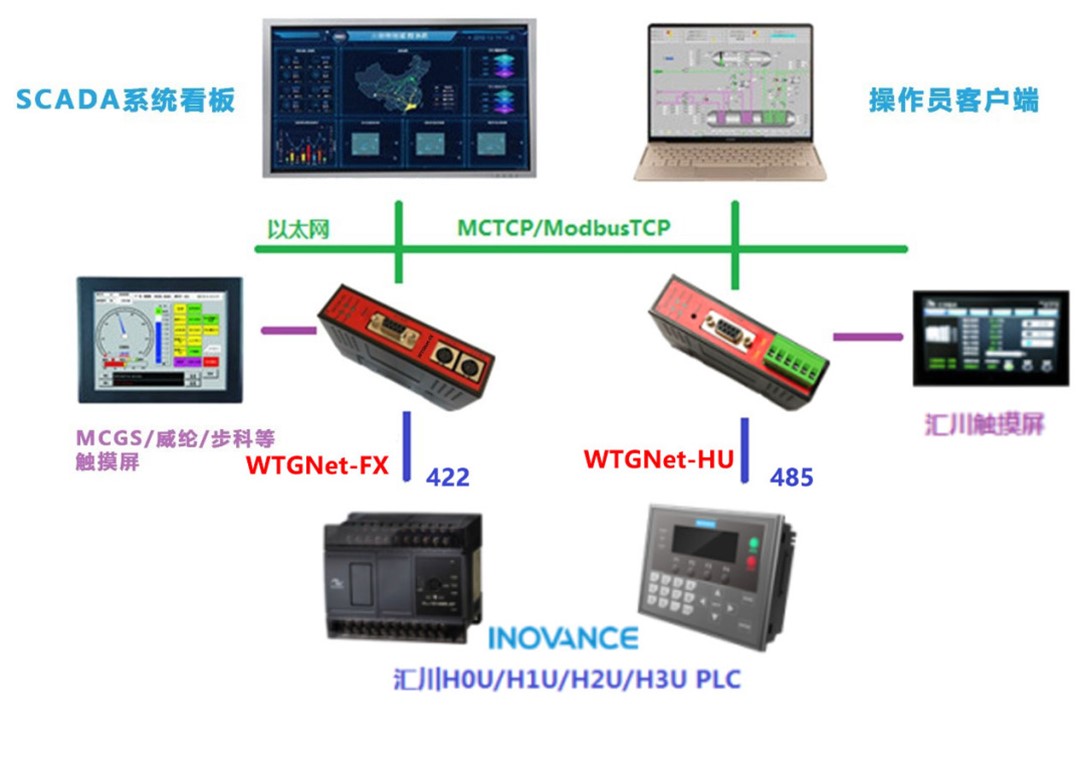 WTGNet-FX用于汇川H0U/H1U/H2U/H3U等系列PLC的422通讯。