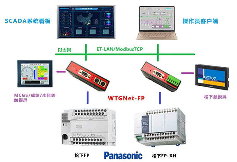 松下圆口协议转换网关,WTGNet-FP/MD5M,主要应用于松下圆口FP系列PLC的数据采集。